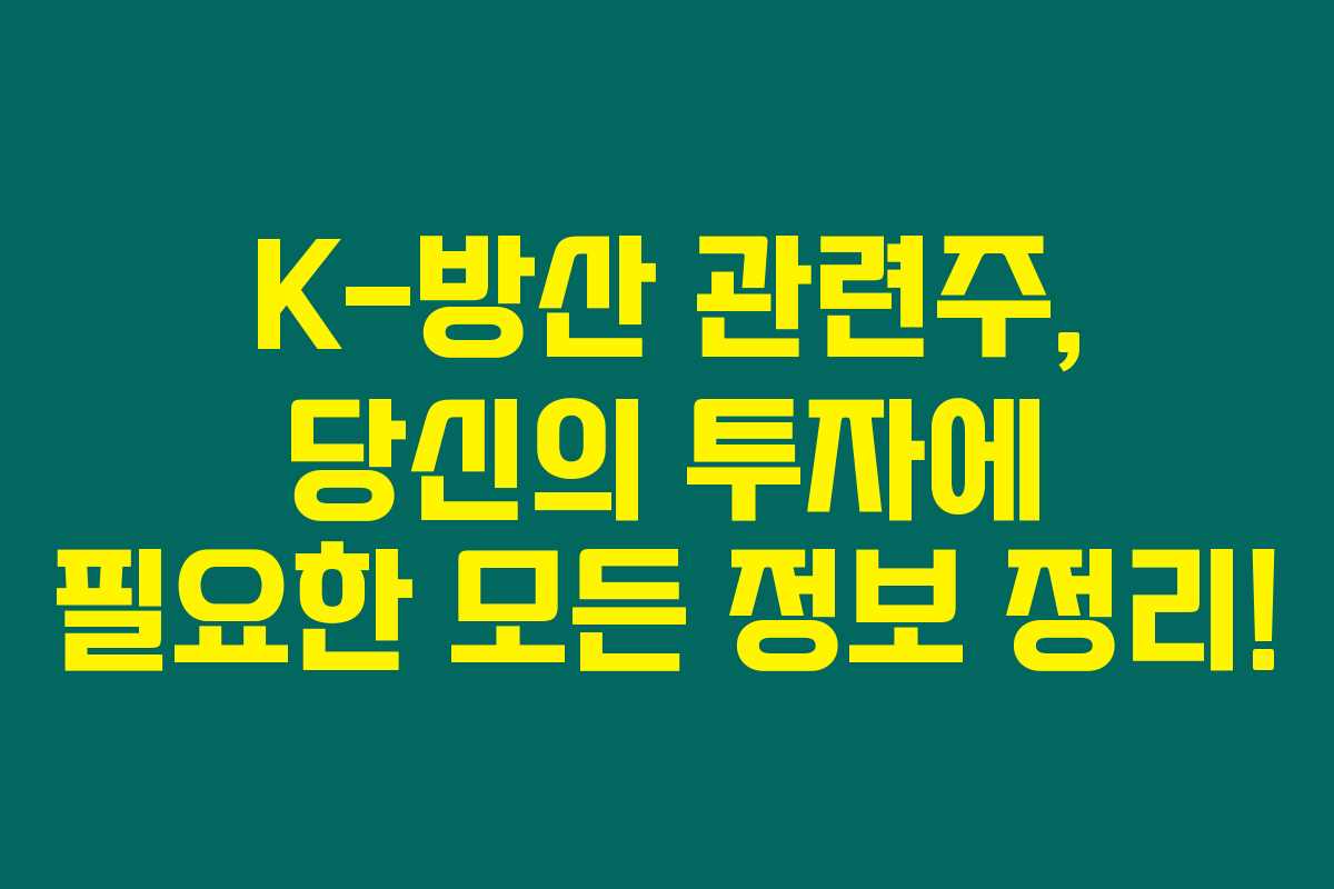 K-방산 관련주, 당신의 투자에 필요한 모든 정보 정리!
