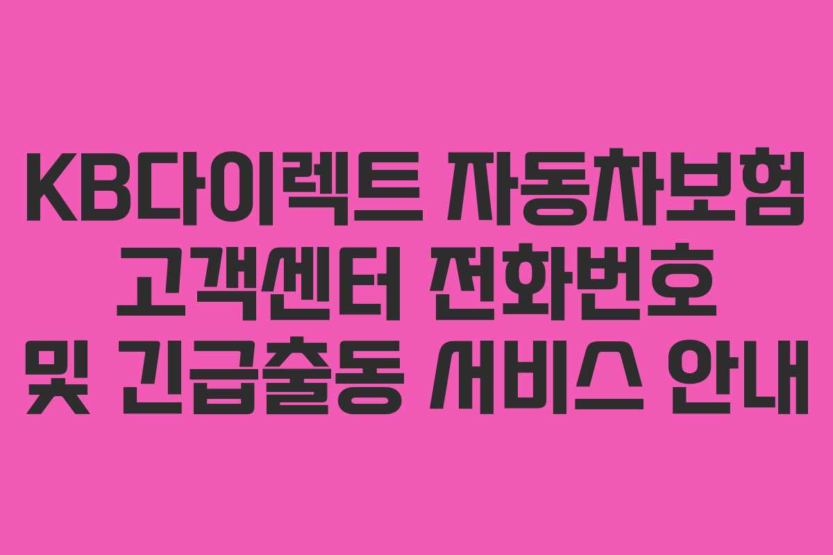 고객들이 자주 문의하는 내용 중 하나는 긴급출동 서비스입니다. 이 서비스는 차량이 고장나거나 사고가 발생했을 때, 신속하게 도움을 요청할 수 있는 시스템입니다. KB다이렉트 자동차보험에 가입된 고객은 고객센터에 전화하여 이 서비스를 신청할 수 있습니다. 상담원에게 상황을 설명하면, 필요한 지원을 받을 수 있도록 안내받을 수 있습니다.