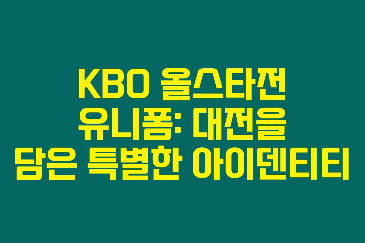 제가 알아본 바로는 KBO는 오는 2025년 신한 쏠뱅크 KBO 올스타전에서 대전의 아이덴티티를 살린 어센틱 유니폼을 출시한다고 하는데요. 이 유니폼은 대전의 상징적 요소를 특별한 팀 컬러와 컨셉으로 재현하여 많은 팬들에게 큰 기대를 주고 있습니다. 아래를 읽어보시면 KBO 올스타전 유니폼의 배경과 대전의 매력을 더욱 깊이 이해할 수 있을 거예요.