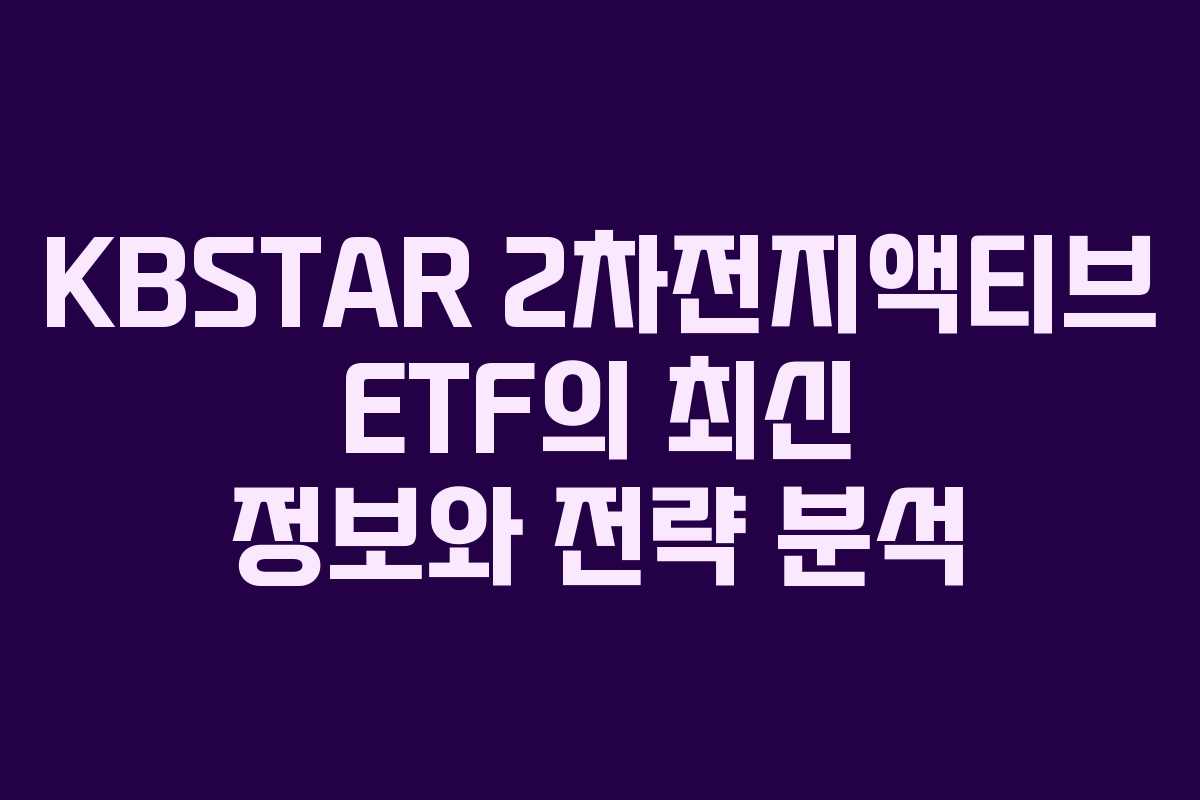 KBSTAR 2차전지액티브 ETF는 현재 2차전지 산업의 성장성과 관련된 투자 기회를 제공하는 중요한 금융 상품입니다. 이 글에서는 2026년 현재의 최신 데이터를 바탕으로 KBSTAR 2차전지액티브 ETF의 수익률, 배당금, 대표종목, 특징, 투자 전략 등을 심층적으로 분석하겠습니다.