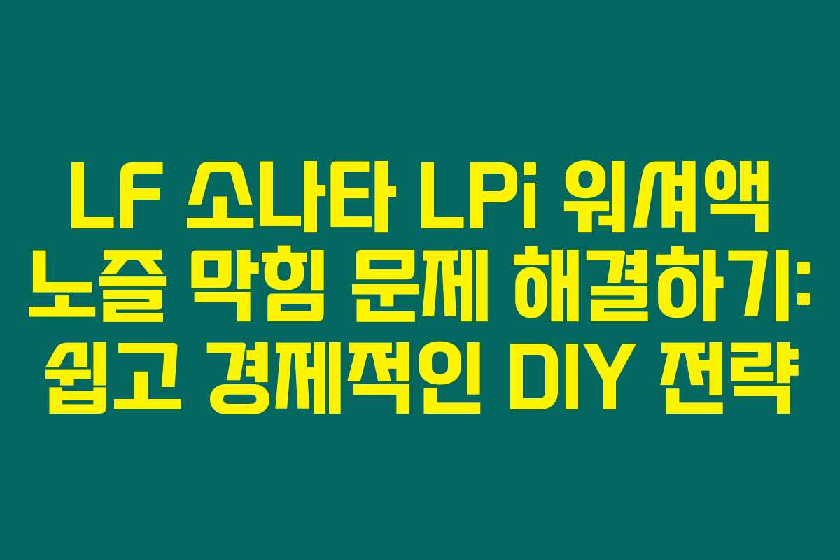 LF 소나타 LPi의 워셔액 노즐 막힘 문제는 다양한 증상으로 나타납니다. 제가 겪은 경험을 바탕으로 대표적인 증상은 다음과 같습니다: