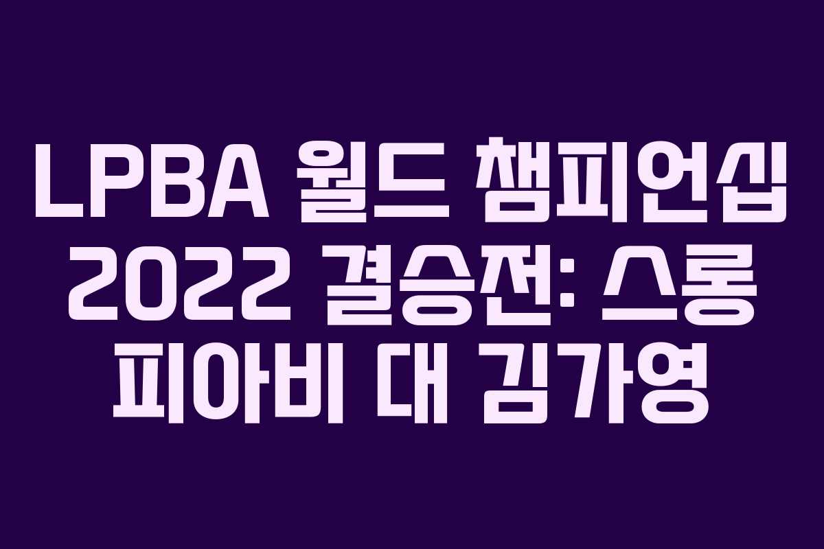2022년 SK 렌터카 LPBA 월드 챔피언십이 진행 중이며, 결승전에서는 스롱 피아비와 김가영이 맞붙게 되었습니다. 두 선수는 지난해에도 결승에서 대결을 펼쳤으며, 올해 다시 한 번 명승부를 예고하고 있습니다.