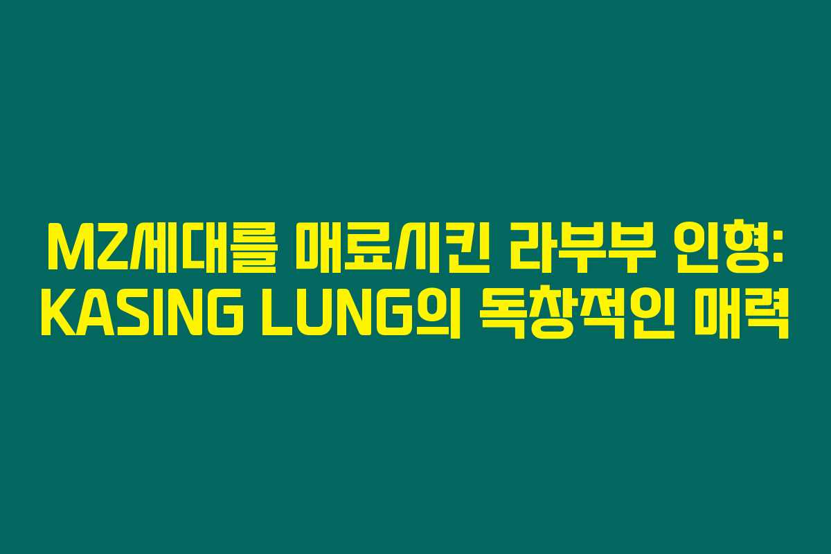 라부부 인형은 KASING LUNG의 창의력과 감성이 담긴 작품입니다. 이 인형은 그가 전하고 싶은 메시지가 강하게 담겨 있으며, 인형 하나하나에 독특한 매력이 존재합니다. 이는 MZ세대에게 큰 흥미를 끌고 있으며, 각 인형이 발생하는 다양한 스토리를 통해 소비자들의 관심을 끌고 있습니다.