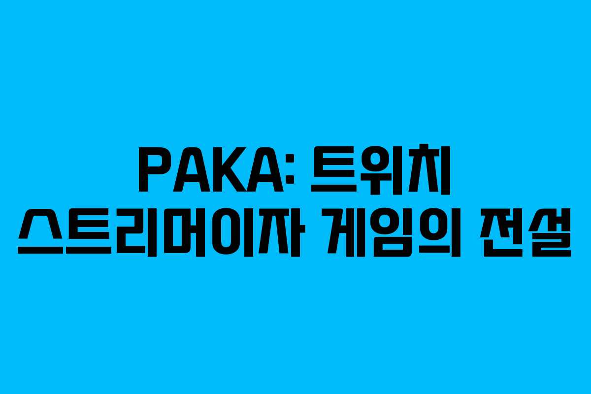PAKA는 전 카카오TV PD로서 방송을 시작했으며, 마이크 없이도 오랜 시간 동안 인기를 끌었습니다. 특히, 리그 오브 레전드와 배틀그라운드에서의 뛰어난 실력으로 유명해졌습니다. 그의 방송은 대중에게 큰 인기를 얻었고, 트위치에서 26만 명 이상의 팔로워를 보유하고 있습니다.